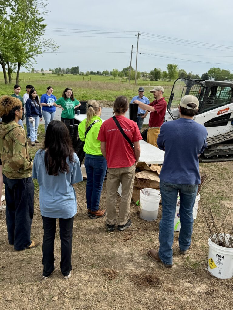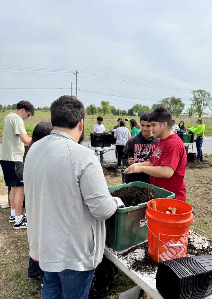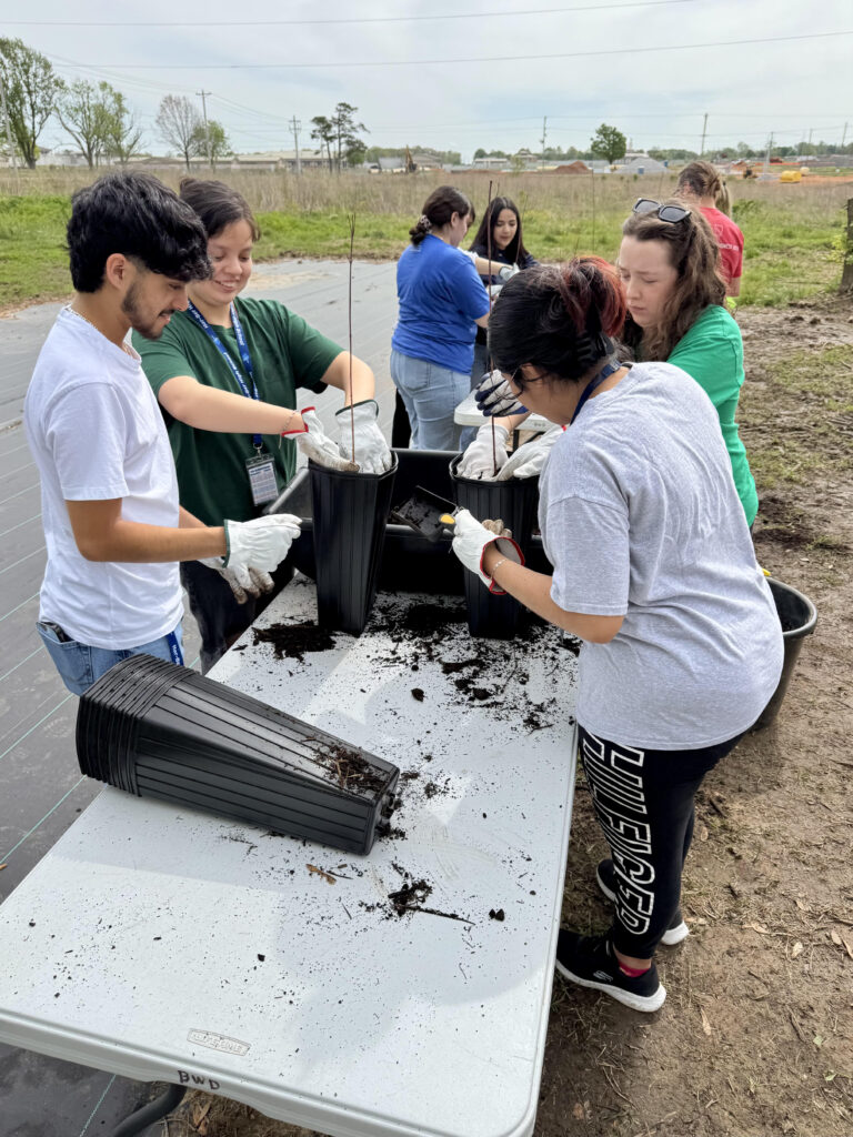 Above: Mr. Roberts and Har-Ber High School students join staff from the Alliance and the Arkansas Game and Fish Commission after planting trees they helped pot during the spring CommuniTree event
