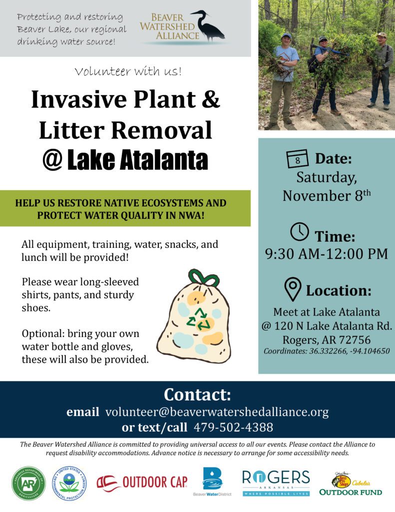RSVPs appreciated but not required. Email volunteer@beaverwatershedalliance.org or text/call 479-750-8007.