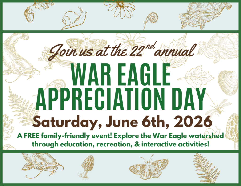 Let’s celebrate all things War Eagle Creek and War Eagle Creek watershed together! This beautiful area accounts for 1/3rd of all water entering Beaver Lake–the drinking water source for 1 in 5 Arkansans.