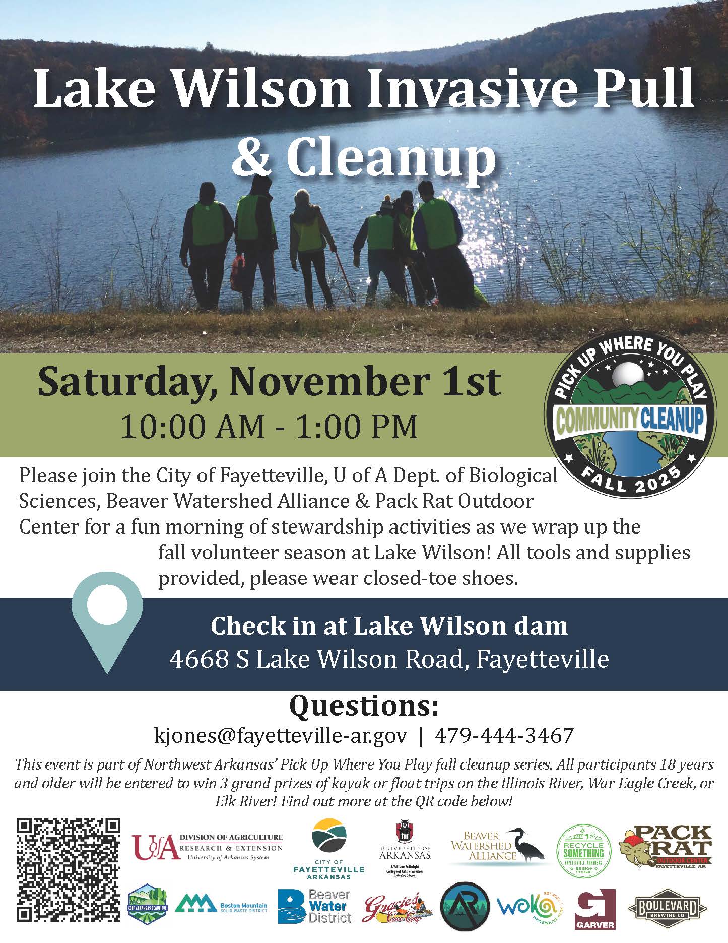 Help us protect water quality and keep the Beaver Lake watershed clean! We are partnering with the University of Arkansas' Volunteer Action Center for Make A Difference Day 2025. As part of the Beaver Watershed Alliance’s ongoing commitment in adopting Habberton Road in Springdale, Arkansas, this clean-up event aims to partner with university students to […]